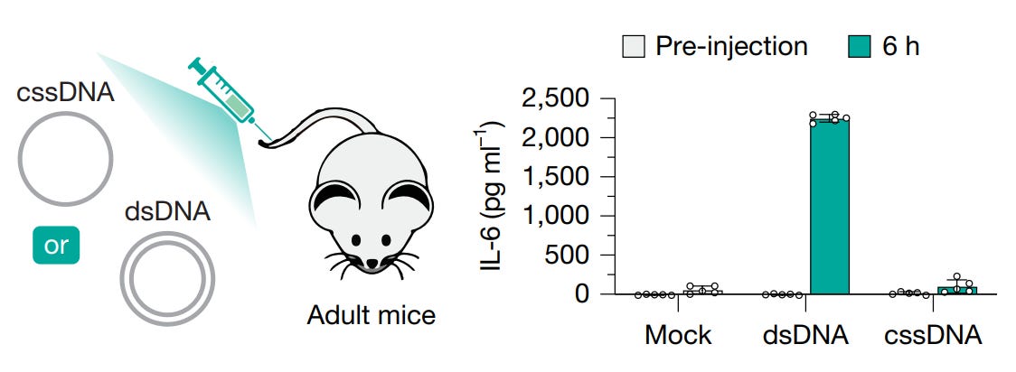 And why does that matter? dsDNA detected in the cytoplasm of a cell triggers the innate immune system. cssDNA, on the other hand, is able to evade the cellular immune triggers.