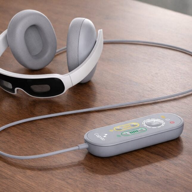 Meet Spectris, a sensory stimulus device developed by Cognito, worn on the head for the treatment of Alzheimer’s Disease.